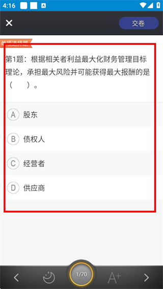 3、在考試答題頁(yè)面可開(kāi)始作答單選題等題目。
