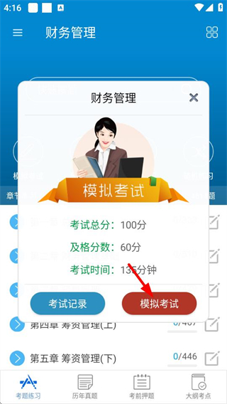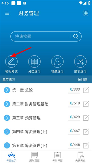 1、在考試練習(xí)界面點(diǎn)擊模擬考試,進(jìn)入模擬考試設(shè)置頁(yè)面。