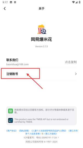 4、在關(guān)于界面,點(diǎn)擊注銷(xiāo)賬號(hào)選項(xiàng),發(fā)起賬號(hào)注銷(xiāo)操作。