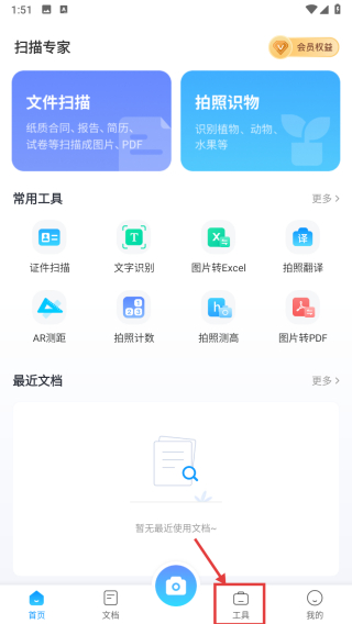 1、打開掃描類APP,點擊底部工具選項,進入工具功能頁面。
