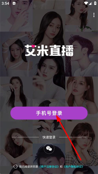 2、在登錄選擇頁(yè)面,點(diǎn)擊手機(jī)號(hào)登錄,進(jìn)入注冊(cè)/登錄頁(yè)面。