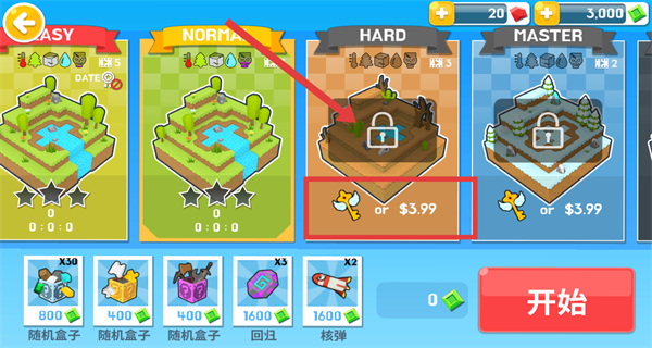 2、在地圖選擇界面,選擇HARD難度地圖,點(diǎn)擊其解鎖區(qū)域,觸發(fā)購買提示。