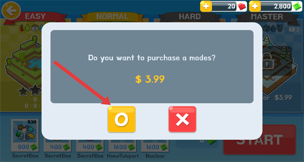 3、在購買確認(rèn)彈窗中,點(diǎn)擊黃色“O”按鈕,完成$3.99的購買操作,解鎖HARD難度地圖。