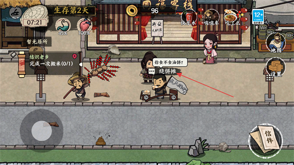 1、在長(zhǎng)安城內(nèi)尋找食物類型的商販攤,點(diǎn)擊對(duì)話條與攤主進(jìn)行對(duì)話購買食物。