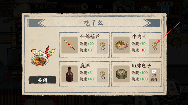 2、消耗金錢換取食物,不同食物的回復(fù)的飽腹感和健康度也有所不同。