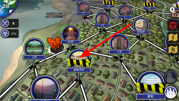 2、在地圖界面,選擇可探索的地點,如超級市場,點擊進入。