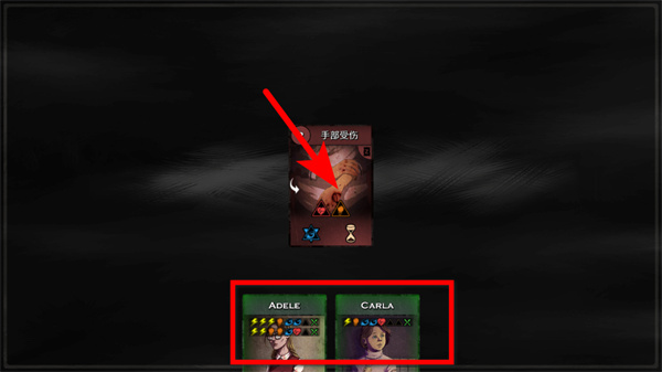 4、選擇相應選項后,點擊右側(cè)箭頭按鈕進行下一步,可能會觸發(fā)角色受傷等事件,需根據(jù)角色狀態(tài)和事件情況進行決策。