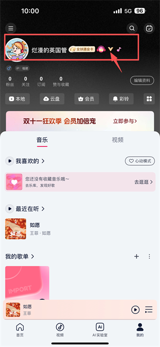 2、在個人中心,點(diǎn)擊用戶昵稱區(qū)域,進(jìn)入資料修改界面。