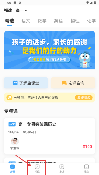 1、打開教育類APP,點擊底部發(fā)現(xiàn)選項,進(jìn)入發(fā)現(xiàn)頁面。
