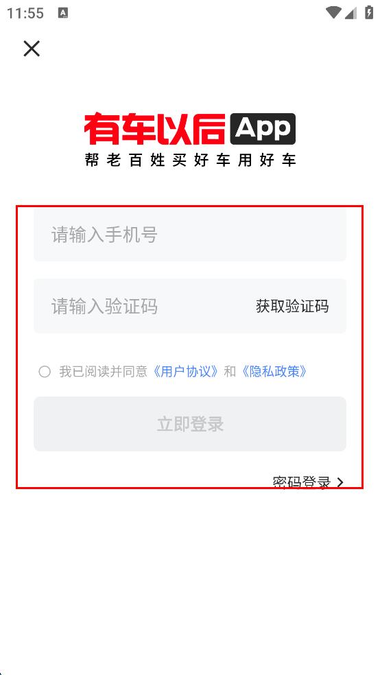 4、完成上述操作后,點(diǎn)擊立即登錄按鈕,完成有車以后APP的登錄操作,之后可使用APP的各項(xiàng)功能,如查看車系詳情等。