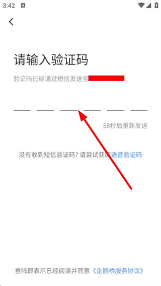 4、在驗(yàn)證碼輸入頁面,輸入收到的驗(yàn)證碼,完成登錄操作。