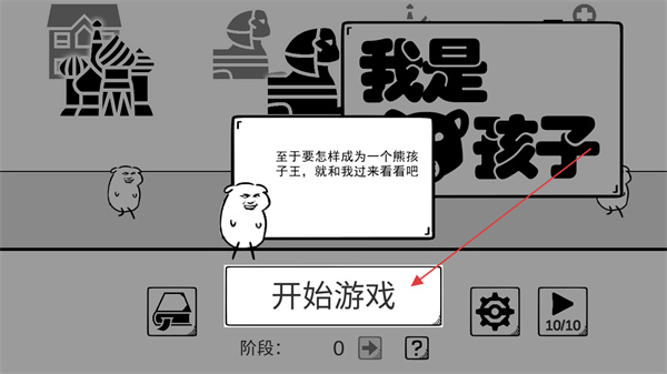 1、點(diǎn)擊開(kāi)始游戲,進(jìn)入游戲,了解成為熊孩子王的挑戰(zhàn)。