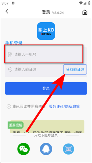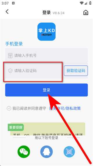 4、輸入驗證碼后,勾選已閱讀并同意遵守后,點擊登錄,完成操作。