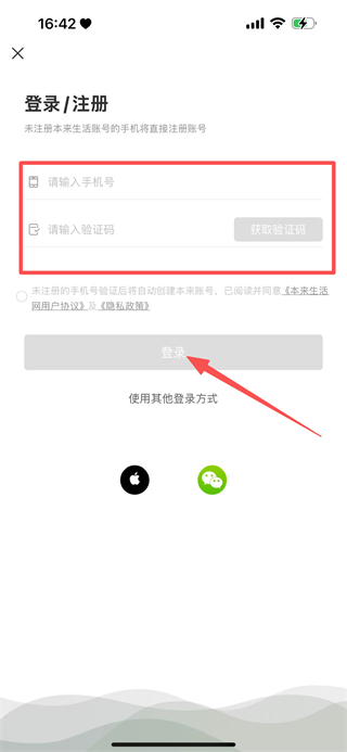 4、輸入手機(jī)號,獲取驗(yàn)證碼并輸入,點(diǎn)擊登錄,完成登錄操作。