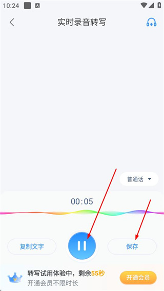 3、錄音過程中可點擊暫停按鈕暫停錄音,也可點擊保存按鈕,完成錄音轉(zhuǎn)文字。
