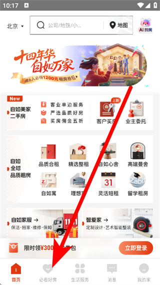 1、打開自如租房,點擊底部必看好房,進(jìn)入必看好房頁面。