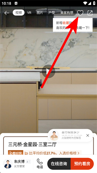 4、在詳情頁,點擊底下收藏圖標(biāo),即可收藏該房源。
