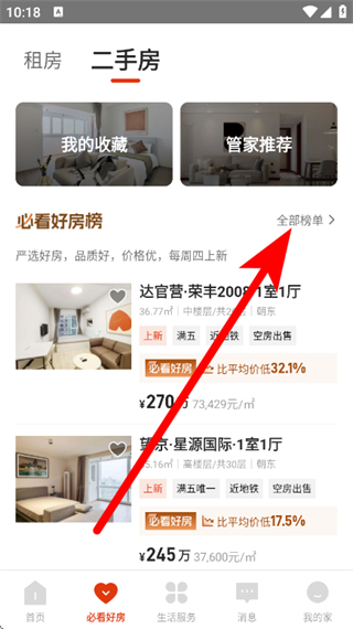 2、在必看好房頁面,點擊全部榜單,進(jìn)入房源列表。