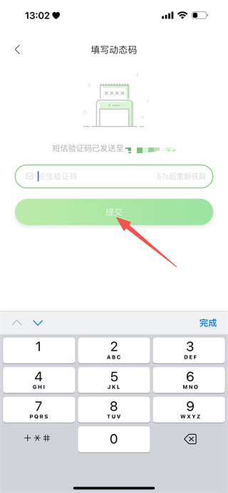 4、在填寫(xiě)動(dòng)態(tài)碼頁(yè)面,輸入收到的短信驗(yàn)證碼,點(diǎn)擊提交,完成登錄操作。