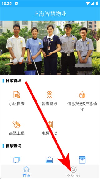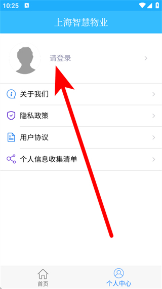 1、打開上海智慧物業(yè),點擊底部個人中心,進入個人中心頁面。