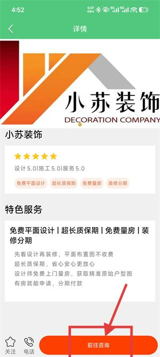 3、在公司詳情頁(yè),點(diǎn)擊前往咨詢按鈕,進(jìn)入發(fā)布設(shè)計(jì)師需求頁(yè)面。