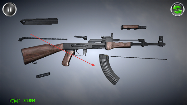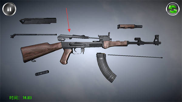 4、拆分槍身內(nèi)部零件,完成所有部件拆解,通關(guān)計(jì)時(shí)模式。