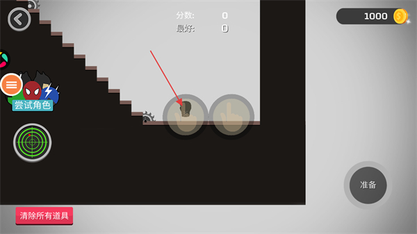 2、在下馬前我們需要布置道具,在火柴人下墜的過程中對(duì)他造成傷害。