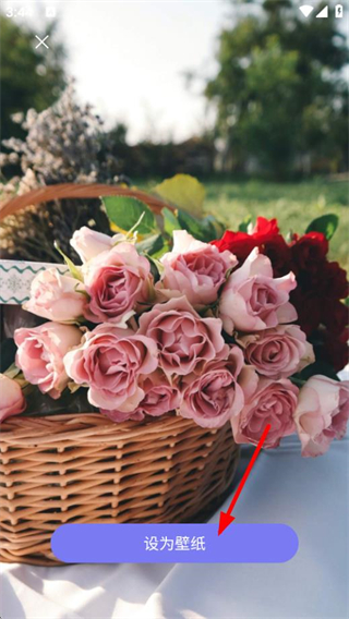 3、在壁紙詳情頁面,點擊設(shè)為壁紙按鈕,完成壁紙設(shè)置操作。