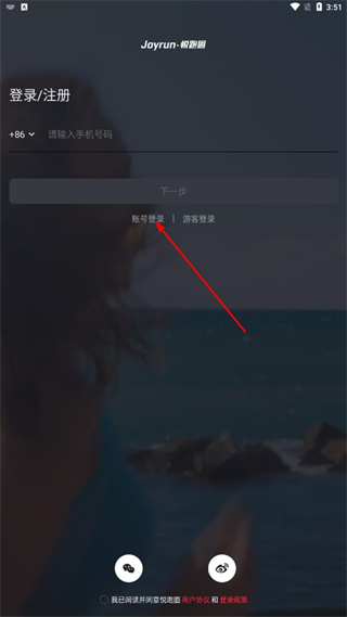 2、在登錄頁面,點擊賬號登錄,進入賬號登錄頁面。