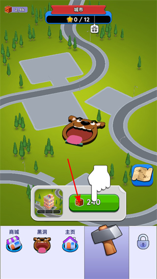 3、點(diǎn)擊建筑按鈕,可在城市中建造建筑,這是拓展游戲內(nèi)容的關(guān)鍵步驟,點(diǎn)擊時根據(jù)金幣數(shù)量選擇合適建筑。