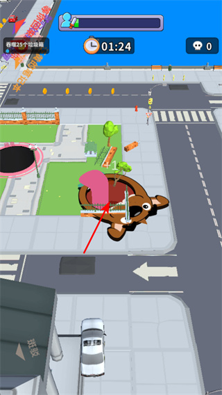 1、游戲中操控黑洞吞噬車輛,這是提升黑洞等級的關(guān)鍵操作,吞噬時需關(guān)注車輛的行駛路線并及時移動黑洞。