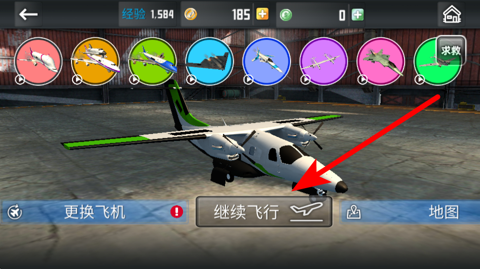 1、進入游戲后,點擊繼續(xù)飛行按鈕,開啟救援飛行任務,這是進入實際飛行操作的關鍵步驟,點擊后即可駕駛飛機前往救援區(qū)域,開啟模擬救援的核心流程。