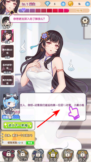 1、游戲中點擊目標對象,可開啟與角色的互動,這是推進劇情和提升好感的關鍵操作,需關注互動提示以解鎖新內(nèi)容。