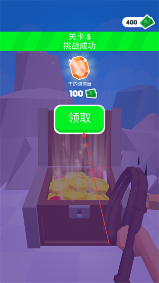 4、關卡5挑戰(zhàn)成功后,點擊“領取”按鈕,獲得鉆石和金幣獎勵。