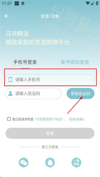2、在手機(jī)號登錄區(qū)域輸入手機(jī)號,點(diǎn)擊獲取驗(yàn)證碼。