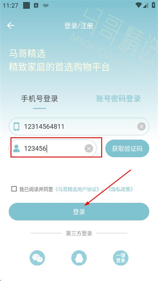 3、輸入驗(yàn)證碼后,勾選用戶協(xié)議》,點(diǎn)擊登錄,完成賬號登錄操作。