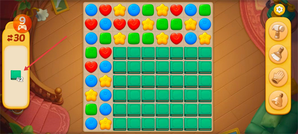 2、觀察游戲界面的任務(wù)目標(biāo),本關(guān)需收集42個(gè)綠色方塊。
