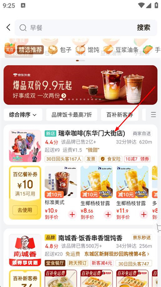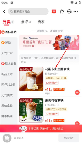 2、在外賣(mài)頻道頁(yè)面,選擇目標(biāo)商家,進(jìn)入商家店鋪?lái)?yè)。