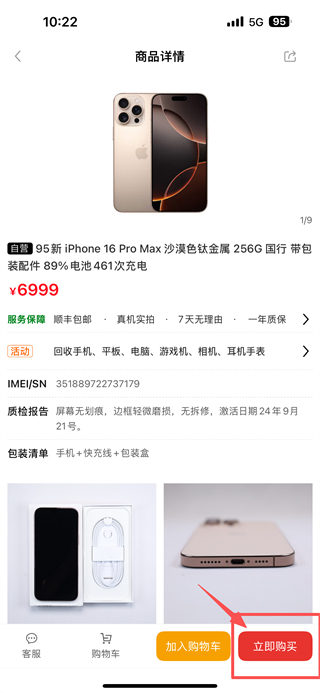 4、在商品詳情頁,點擊立即購買按鈕,進行該商品的購買操作。