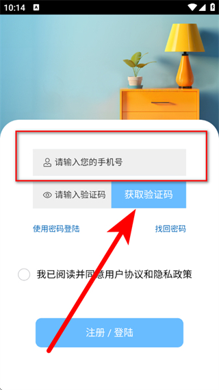 3、在登錄頁面,輸入手機(jī)號(hào)后,點(diǎn)擊獲取驗(yàn)證碼。
