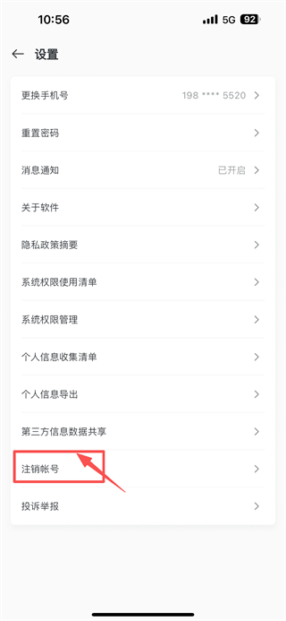 3、在設(shè)置界面,點(diǎn)擊注銷帳號(hào)選項(xiàng),進(jìn)入注銷帳號(hào)頁(yè)面。