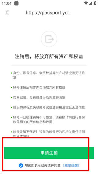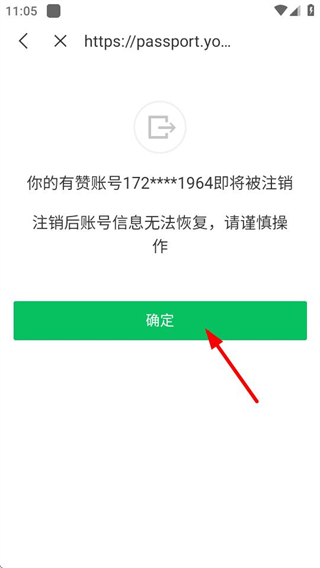 6、在注銷確認(rèn)頁(yè)面,點(diǎn)擊確定按鈕,完成賬號(hào)注銷操作。