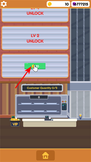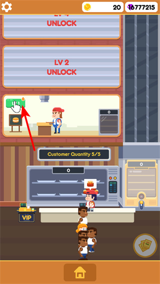 1、游戲中點(diǎn)擊綠色解鎖按鈕,可制作區(qū)域,這是擴(kuò)展餐廳經(jīng)營(yíng)的關(guān)鍵操作,解鎖時(shí)需關(guān)注金幣消耗和區(qū)域功能。