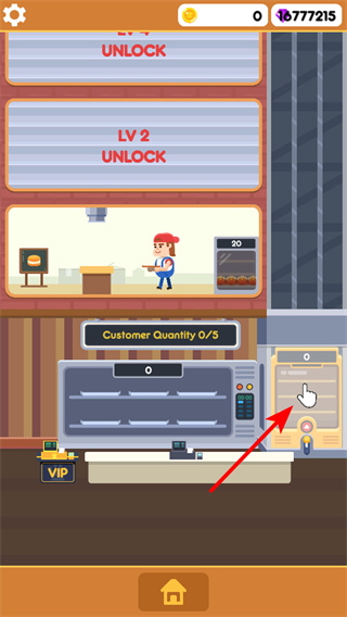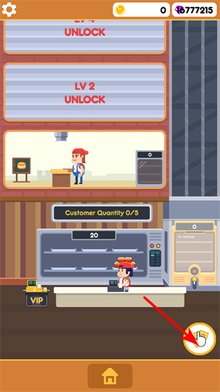 3、點(diǎn)擊右下角金幣圖標(biāo),可收集顧客消費(fèi)的金幣,這是積累經(jīng)營(yíng)資源的關(guān)鍵步驟,收集時(shí)需及時(shí)操作避免遺漏。