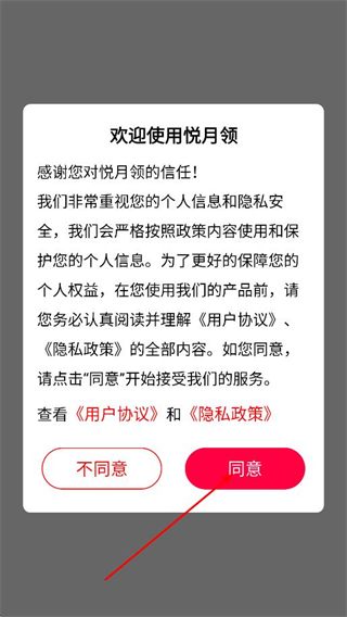 1、在用戶協(xié)議與隱私政策彈窗中,點擊同意,進入首頁。