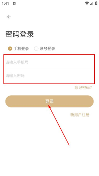 4、在密碼登錄頁面,輸入手機號和密碼后點擊登錄,完成登錄操作。