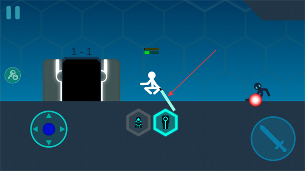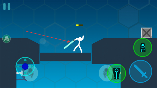 1、用左側(cè)虛擬搖桿控制火柴人移動,點(diǎn)擊右側(cè)劍形按鈕揮劍攻擊,收集鑰匙等道具。