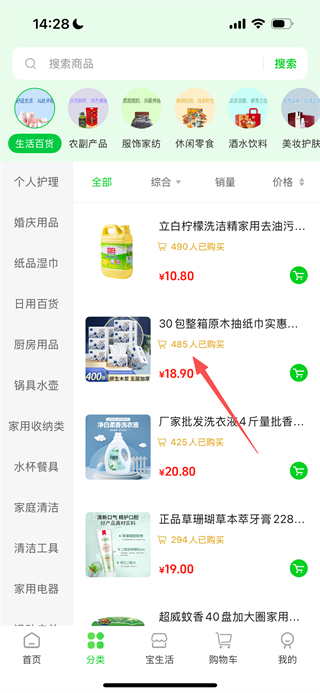 1、在可寶網(wǎng)首頁,點(diǎn)擊生活百貨,進(jìn)入對應(yīng)商品列表頁面。
