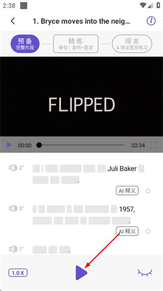 3、在朗讀練習(xí)界面,點(diǎn)擊播放按鈕,開始該片段的英語聽力與復(fù)述練習(xí)。