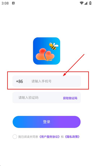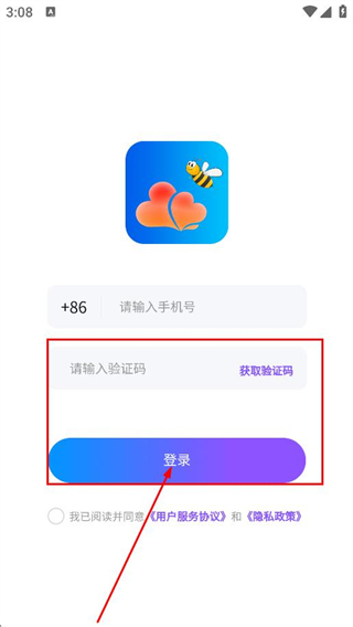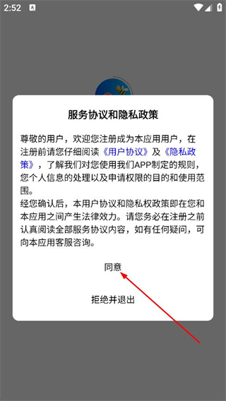 1、在隱私政策彈窗中,點擊同意,進入登錄頁面。